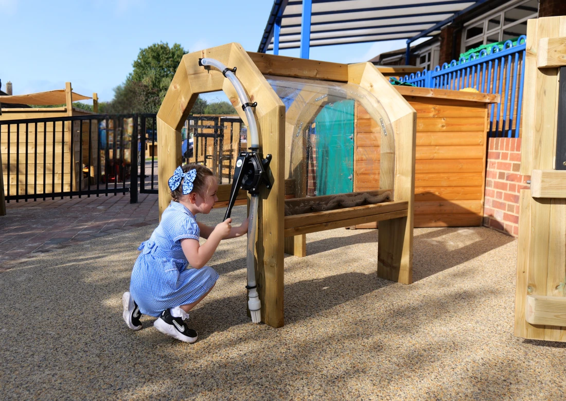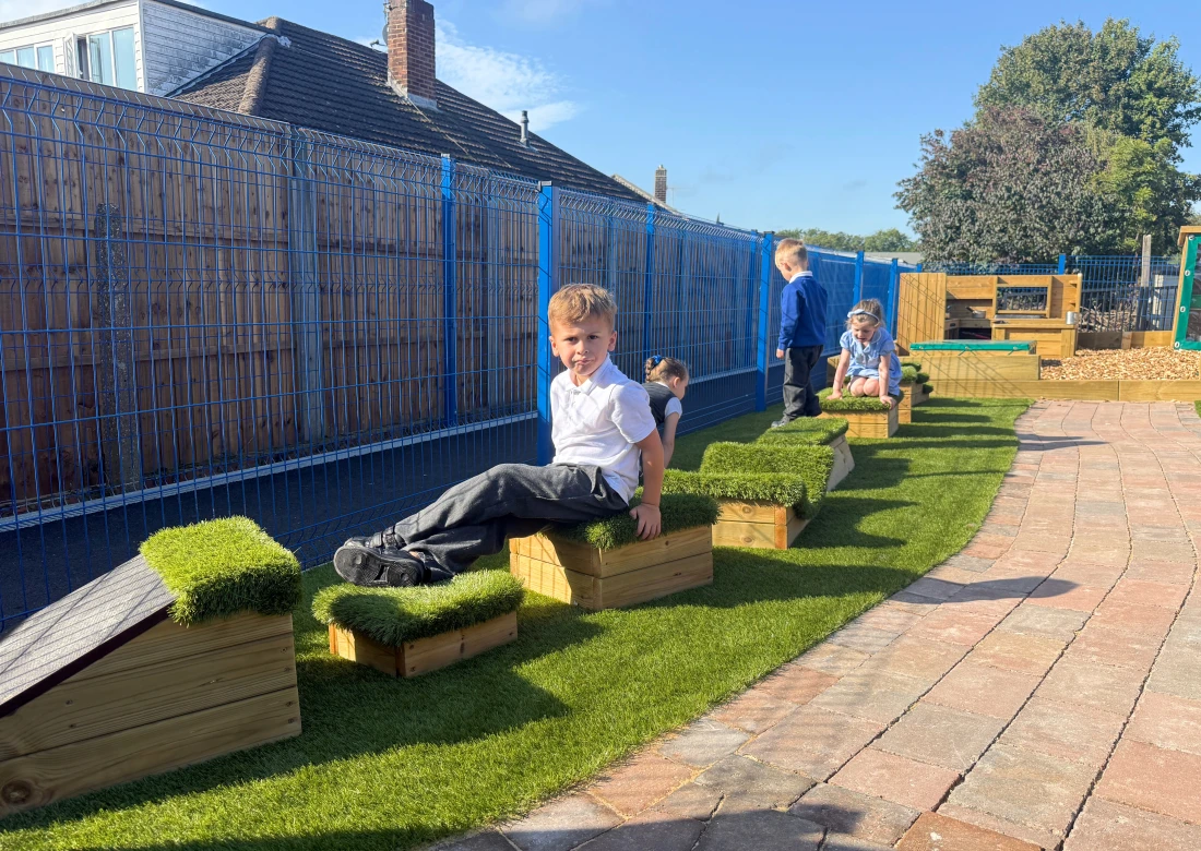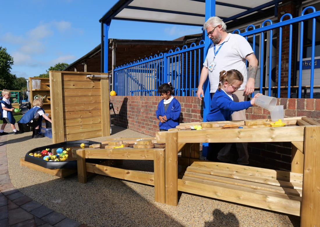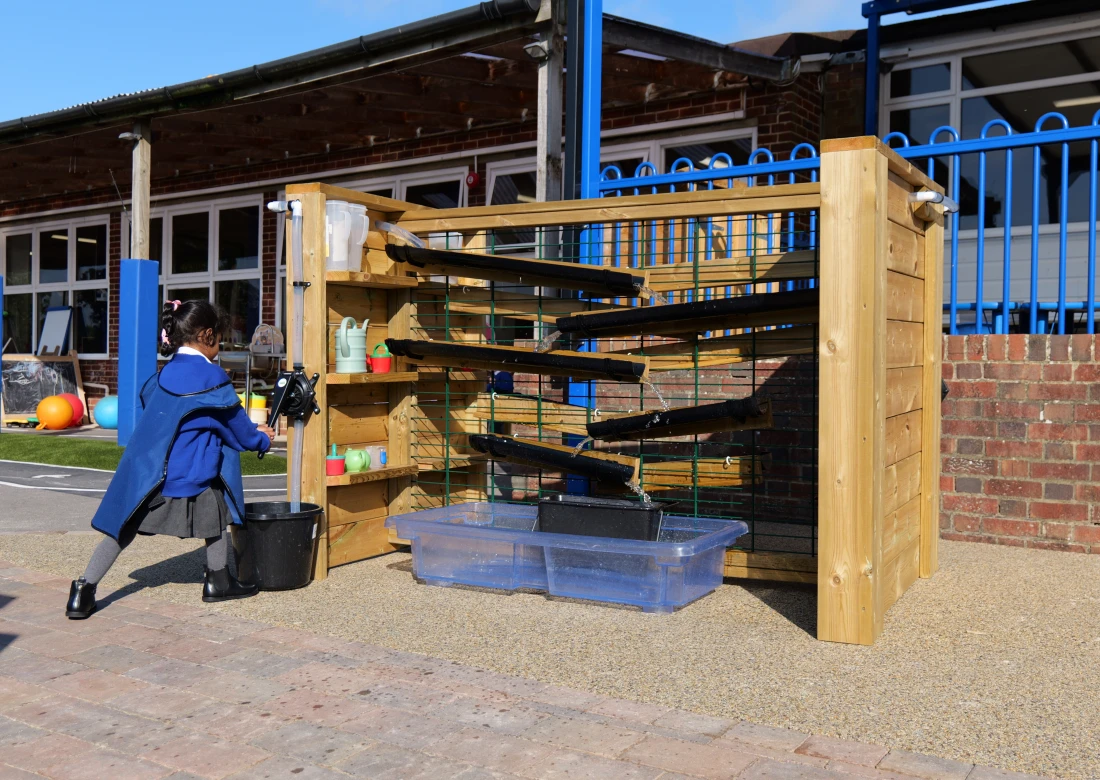 The schools aim was to create a more dynamic environment with clearly defined zones for water exploration, messy play, sand play and physical activity; each designed to promote early years development through play-based learning outdoors.