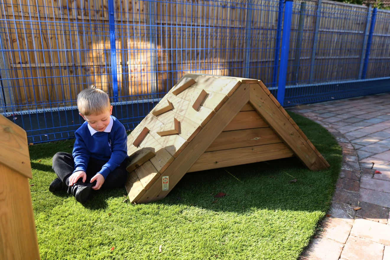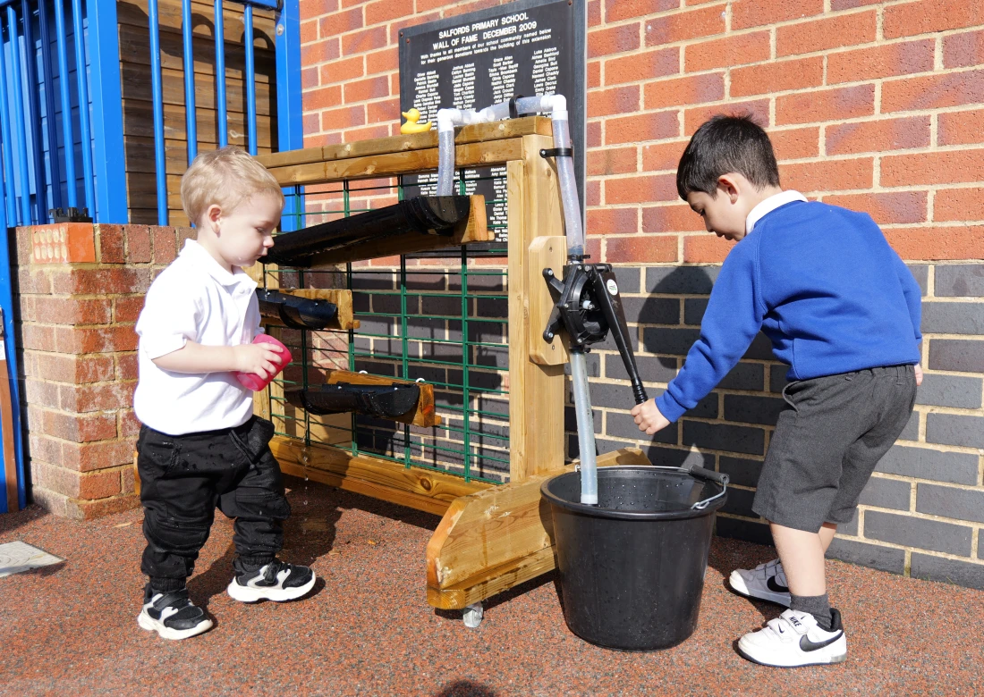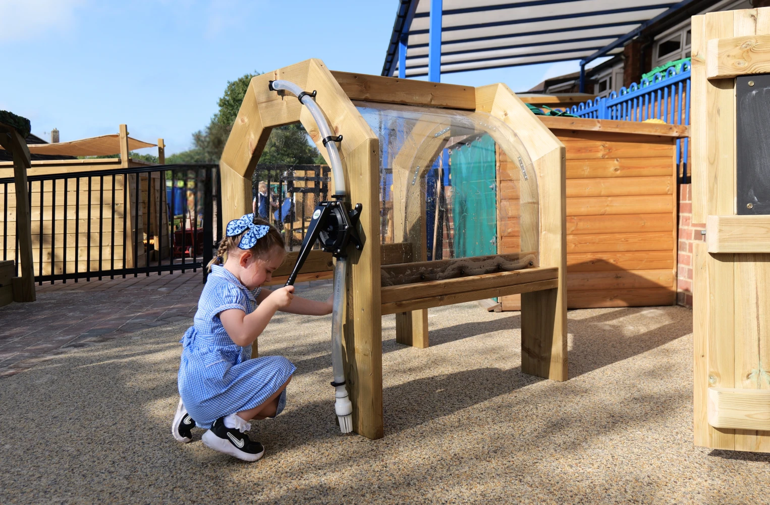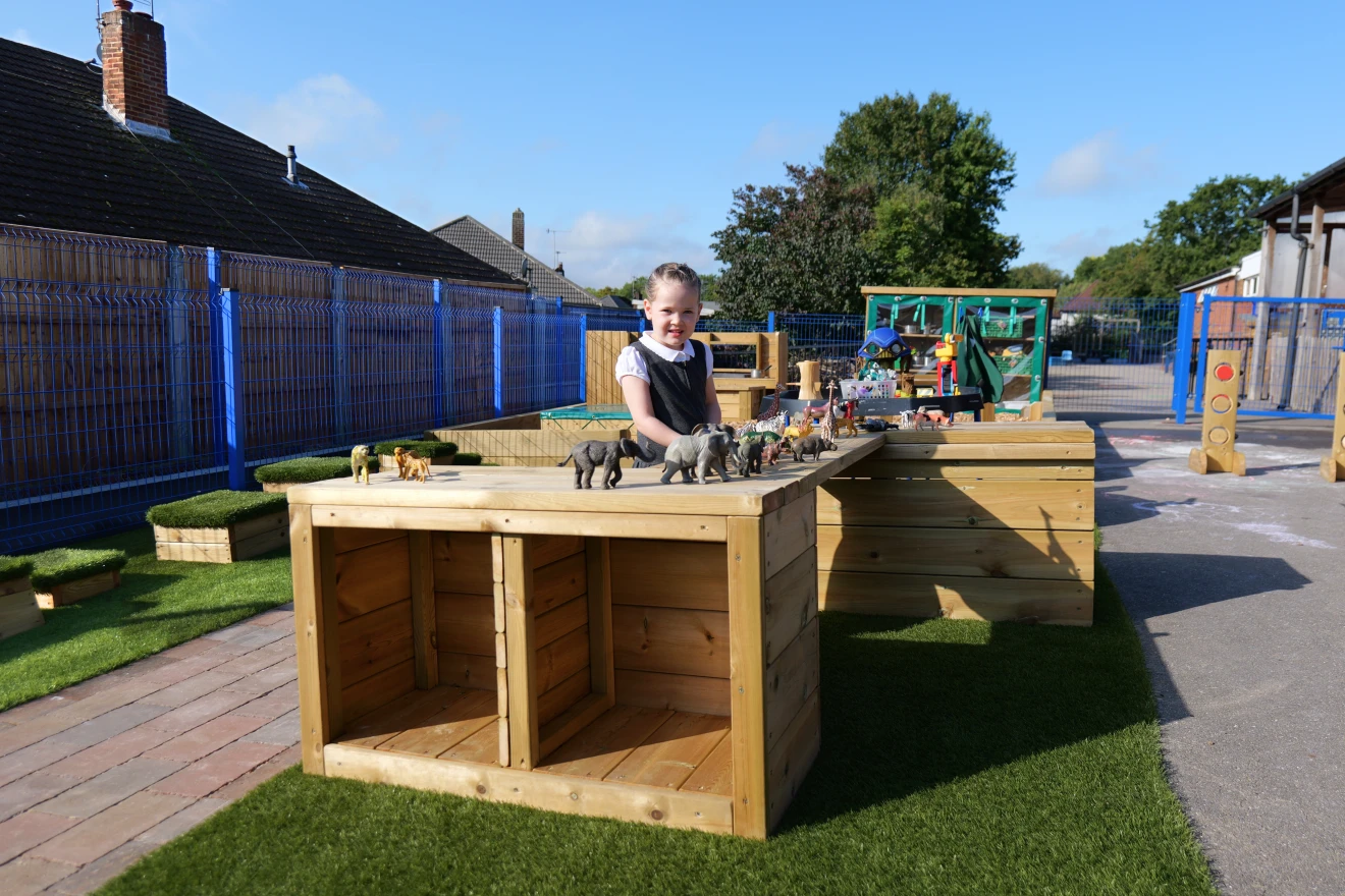 The schools aim was to create a more dynamic environment with clearly defined zones for water exploration, messy play, sand play and physical activity; each designed to promote early years development through play-based learning outdoors.