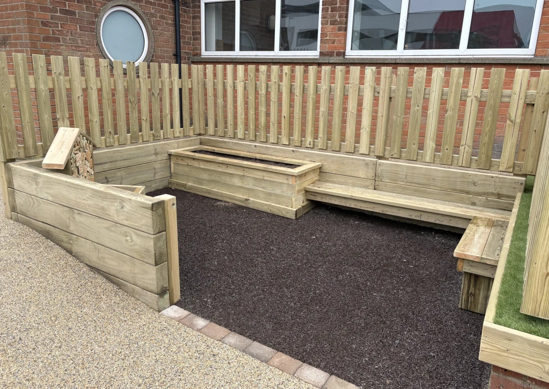 Newby Leisure worked with the Riverside team to redesign the previously underused space, creating a natural playground that promotes outdoor learning, physical activity, and imaginative play.