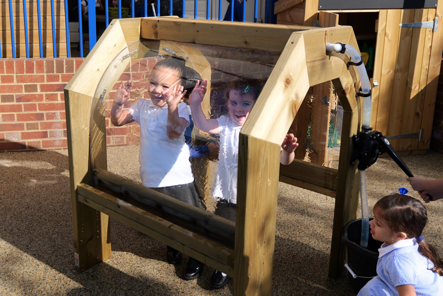 Nuestro túnel de agua, ideal para los primeros años de desarrollo, es fácil de usar para los niños. Observa cómo bombean agua por el túnel o utiliza el Lexan de fácil limpieza para hacer marcas.