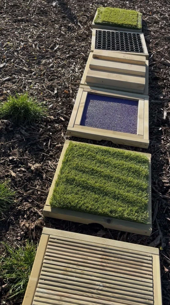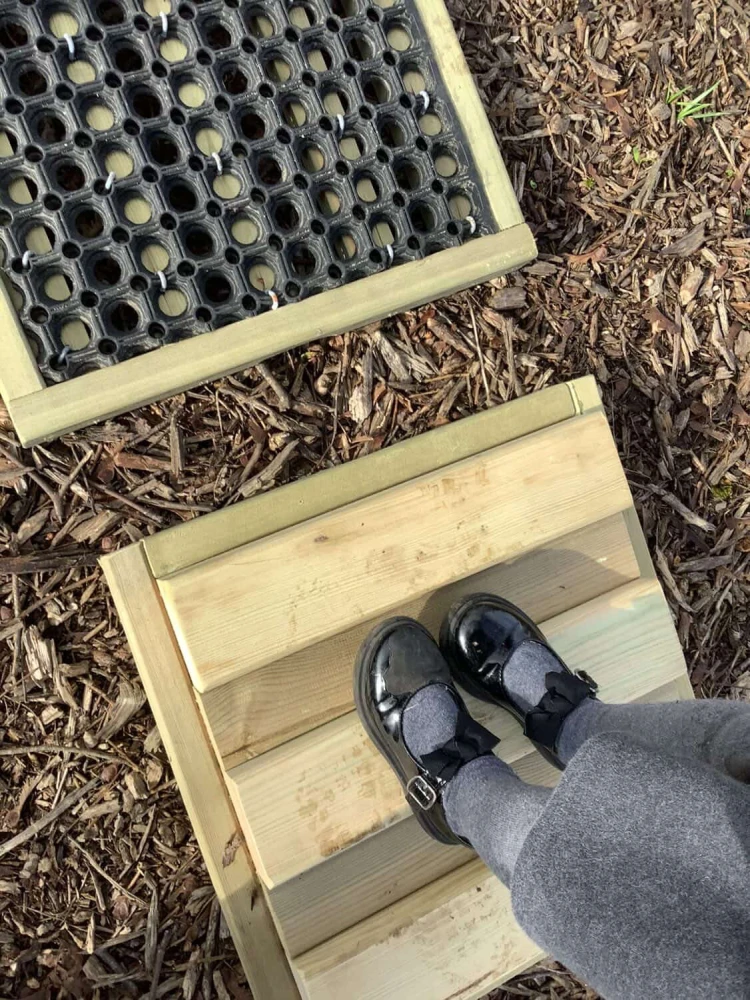As children walk, step and jump from tile to tile, they’ll also strengthen their balance, coordination and gross motor skills, all while having fun outdoors!
