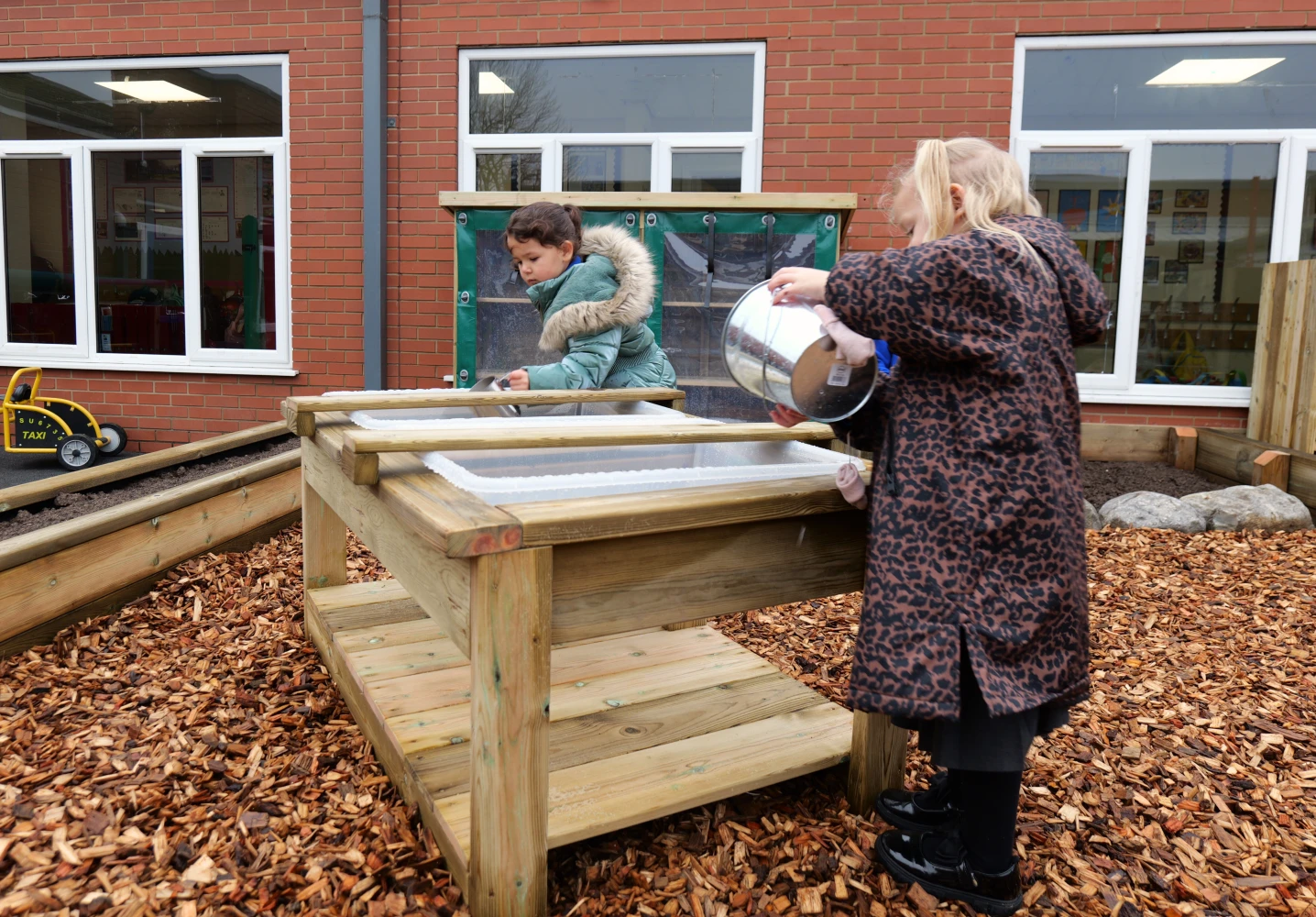 Manufactured using Sustainable Pressure Treated Redwood Timber for product longevity, this early years resource is hand-crafted and complete with two plastic tubs, both easy to clean.