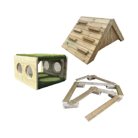Play package is inclusive of: Mini Adventure Trail, Mini Climbing Prism and the Crawl Through Grass Tunnel.